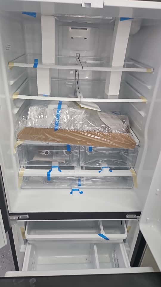 With a 23.8 cu. ft. capacity, this 3-door layout provides easy access to fresh and frozen foods. The French door design opens to wide, adjustable shelves and deep door bins, ideal for organizing everything from gallon jugs to deli trays. The full-width deli drawer keeps meats and cheeses neatly stored, while two humidity-controlled crispers preserve fruits and vegetables longer.
