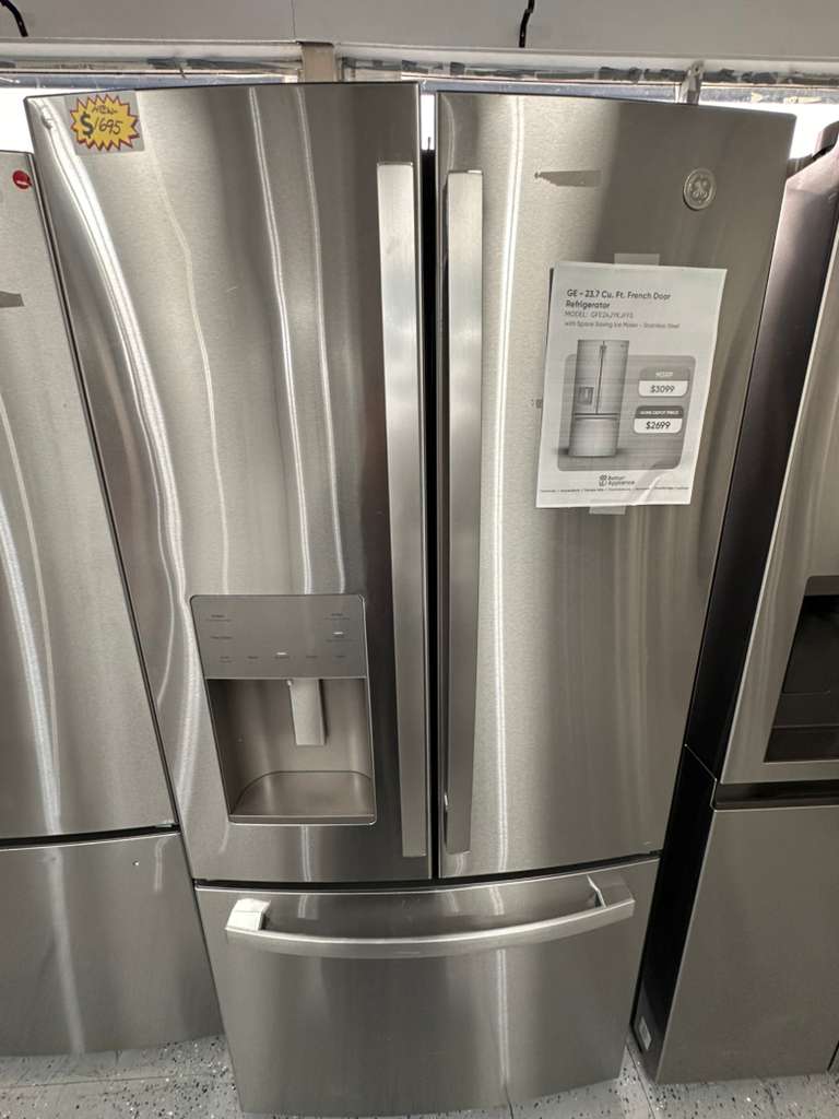 The GE GFE24JYKJFS French Door Refrigerator delivers superior cooling performance with a sleek stainless steel finish that enhances any modern kitchen. Designed for efficiency and convenience, this refrigerator combines advanced technology with durable construction to keep food fresh and organized.