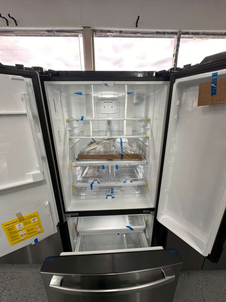 With 23.8 cu. ft. of storage, it offers spacious compartments for fresh and frozen foods. Adjustable shelves, gallon door bins, and humidity‑controlled crispers provide flexible organization, while bright LED lighting ensures clear visibility. The French door design allows easy access to wide shelves and freezer storage, making it ideal for busy households.