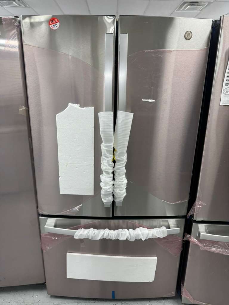 The GE GNE27JYMFS is a powerful, family-friendly French-door refrigerator designed to deliver reliable cooling, spacious storage, and sleek style.
