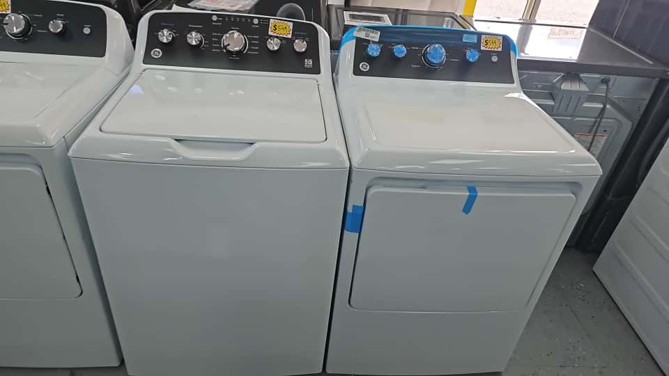 The GE GTW485ASW0WB washer and GTD48EASW0WB dryer set delivers powerful performance, classic design, and everyday reliability perfect for busy households that need no-nonsense laundry solutions.