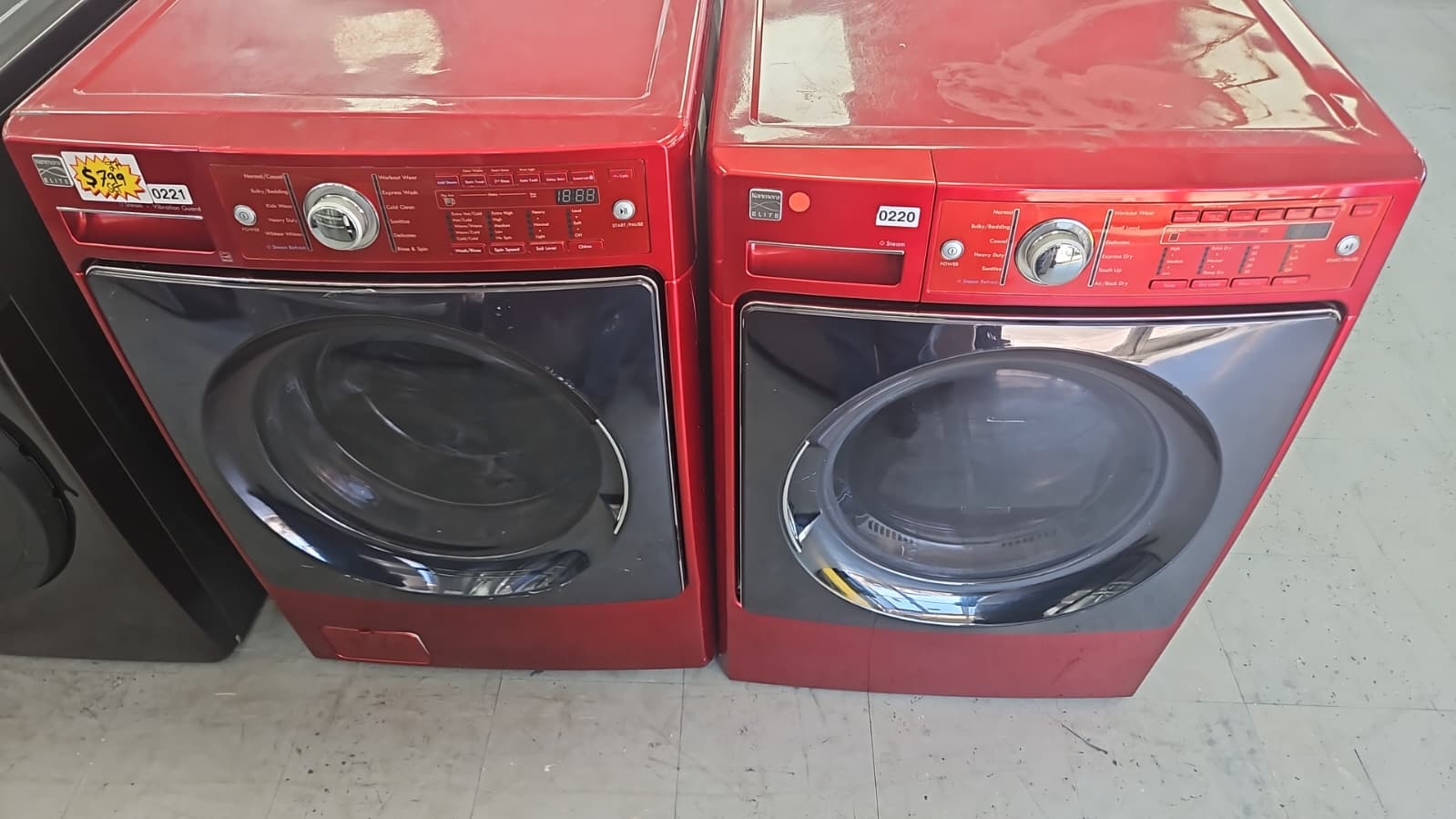 1. Bold red finish – Adds a stylish, modern look to your laundry room.
