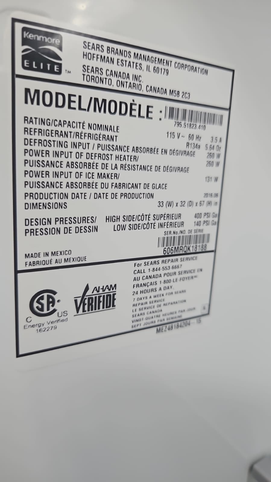 The Kenmore Elite 795.51823.410 combines sleek design, durability, and dependable operation, offering a powerful solution for keeping food fresh. With its quiet operation, generous storage, and easy-to-use features, it consistently earns praise from users for convenience, reliability, and performance. This side-by-side refrigerator is a trusted, efficient, and powerful appliance that enhances any kitchen while providing superior food preservation.