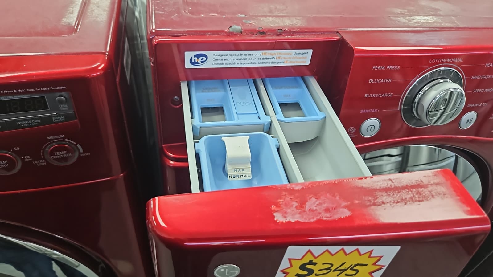 The DLE2350R dryer complements the washer with sensor drying technology that prevents over‑drying, protecting fabrics while saving energy. Wrinkle‑care cycles keep clothes looking fresh, while the roomy drum accommodates bulky items like comforters and towels. With a sleek red finish, the set adds a bold, stylish touch to any laundry space.