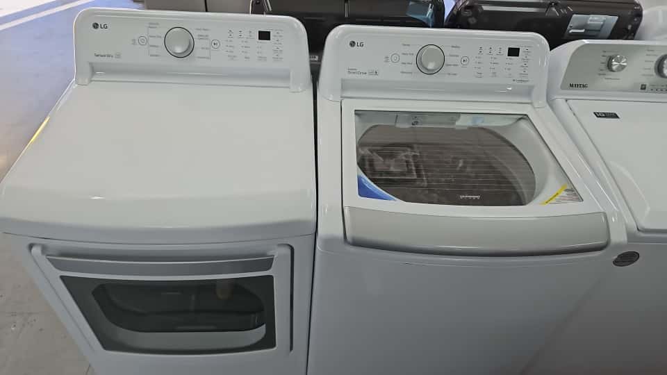 The LG WT7150CW washer and DLE7150W dryer set delivers powerful top-load performance, smart features, and trusted reliability perfect for busy households.