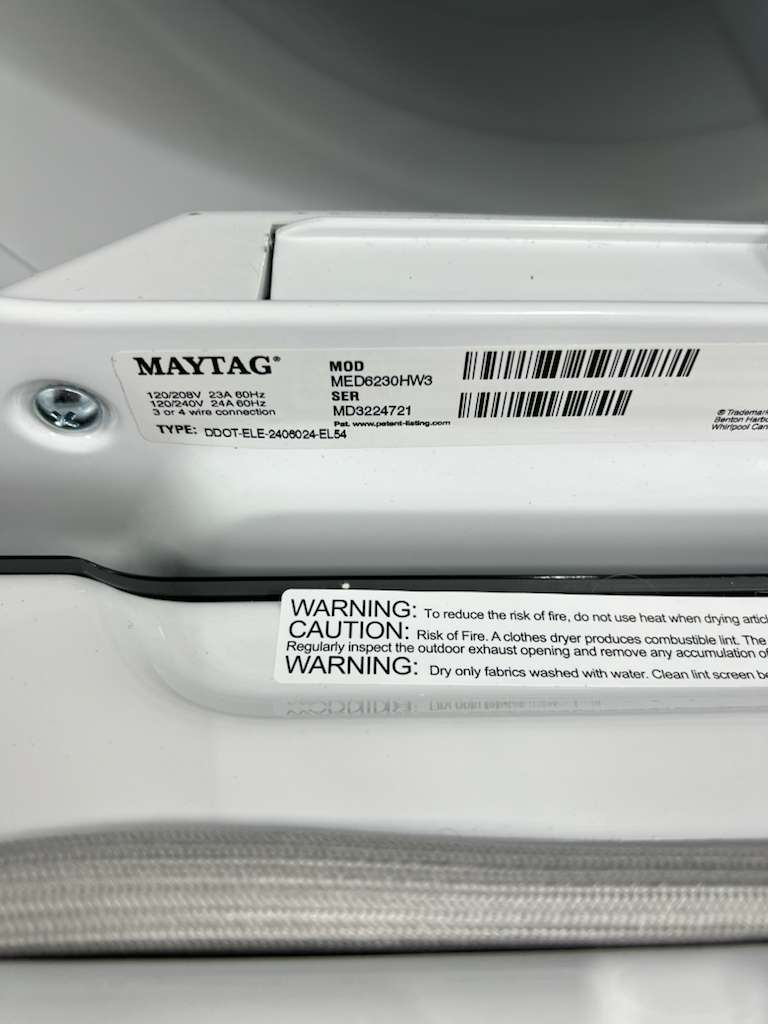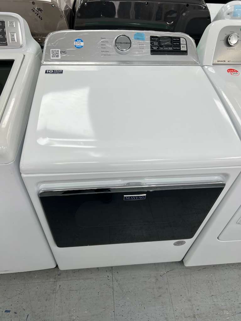 The Maytag MED6230HW is a 7.4 cu. ft. electric dryer built for powerful and efficient performance. Its Extra Power button boosts drying on any cycle, helping tackle thick fabrics and mixed loads.