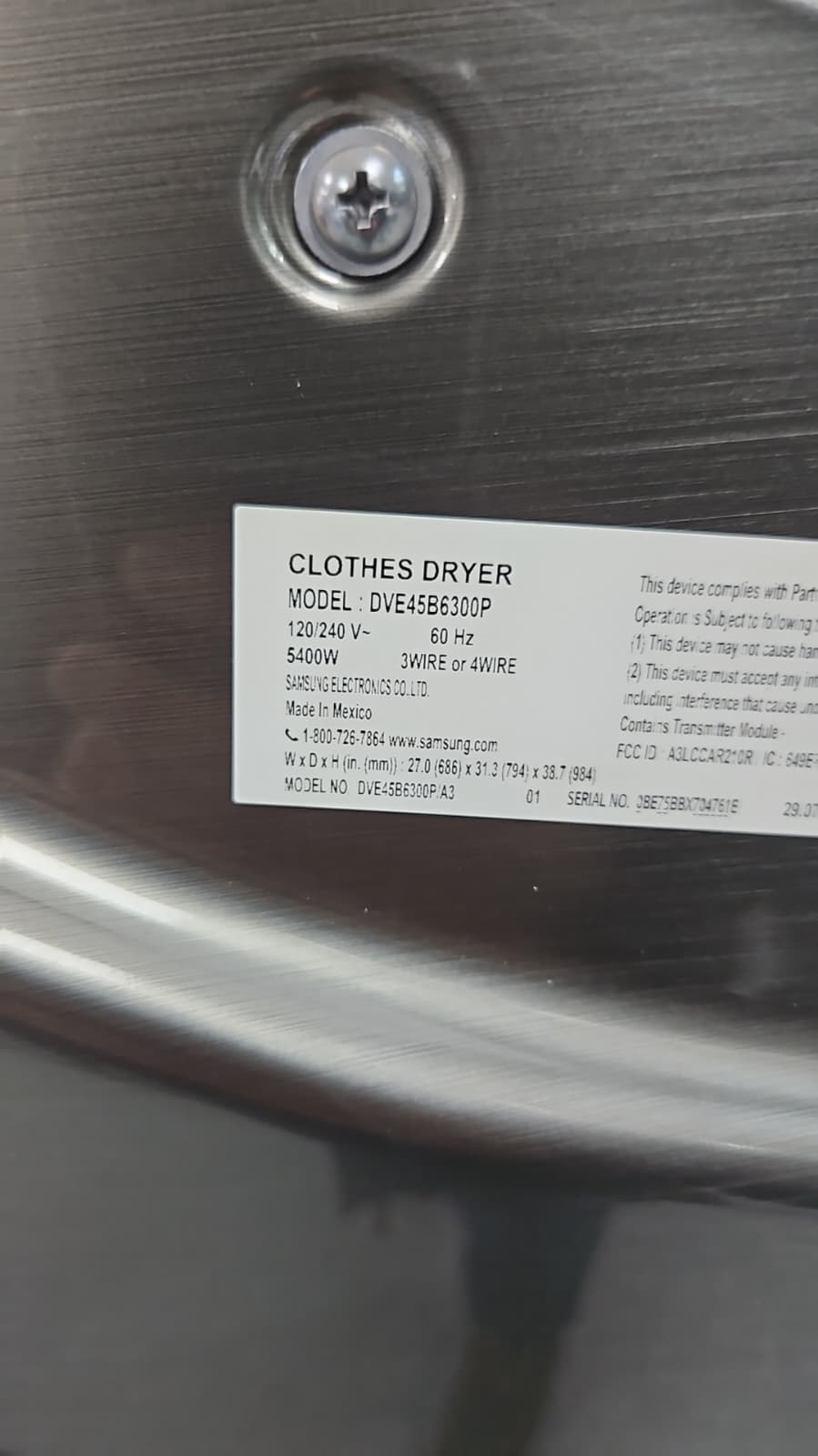 Samsung DVE45B6300P 27″ Advanced Reliable Electric Dryer