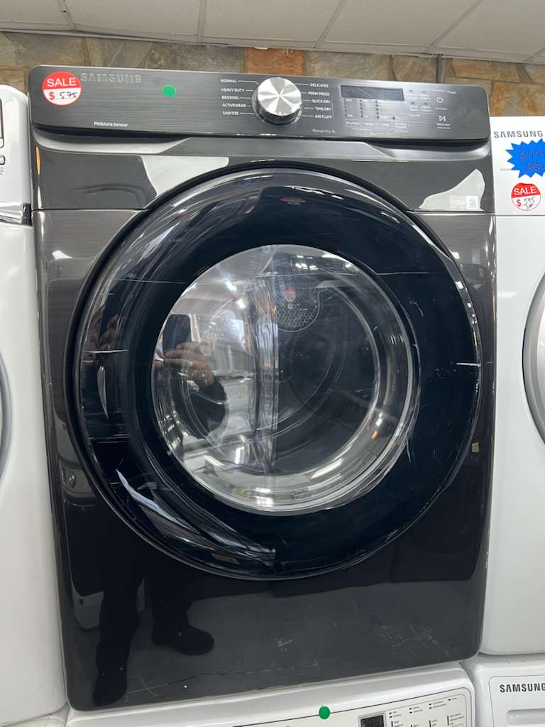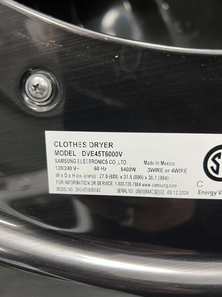 The Samsung DVE45T6000V is a high-performance front load electric dryer designed for efficiency, style, and convenience. Its bold black stainless steel finish adds a modern, premium look to any laundry space.