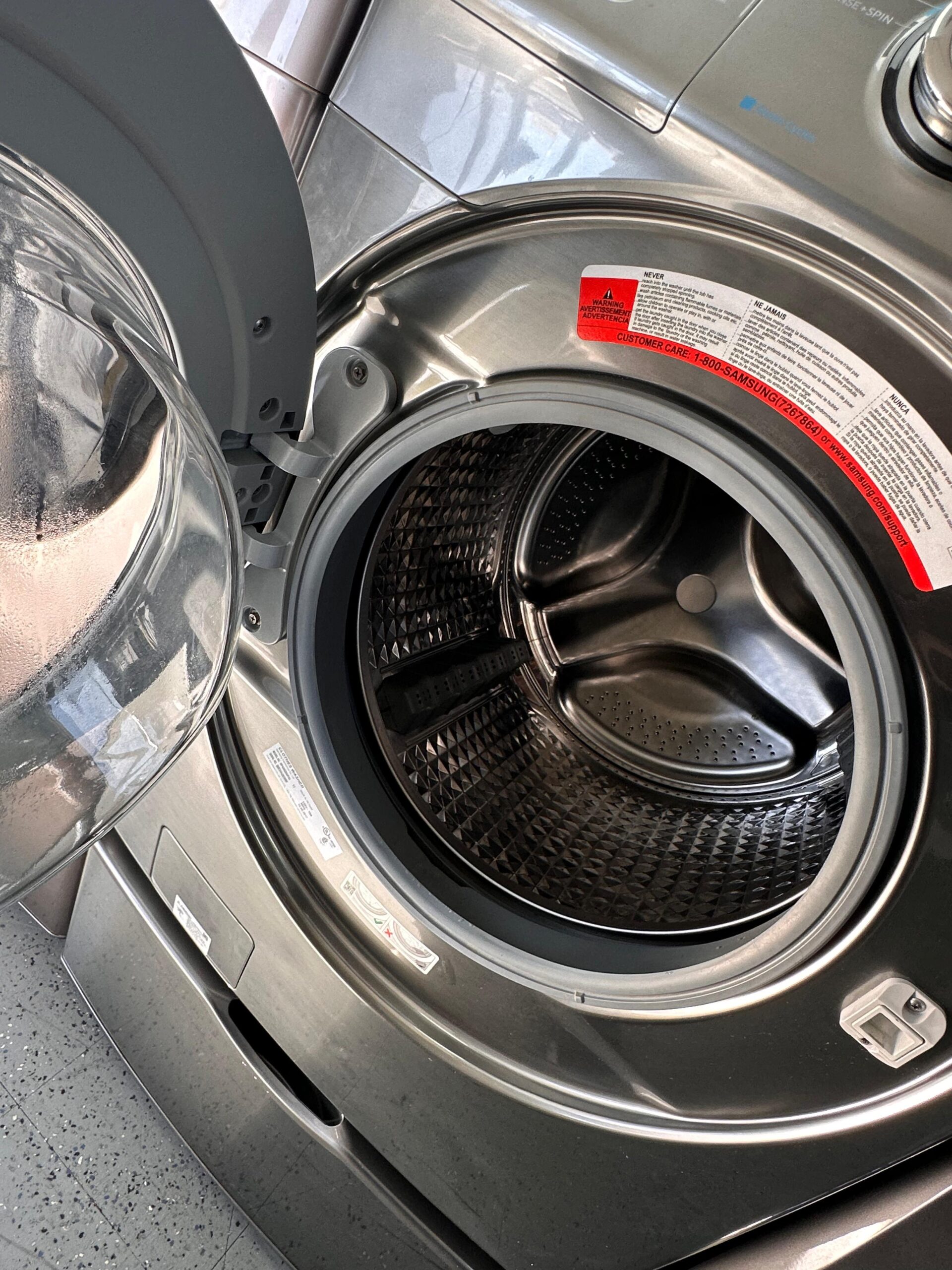 • Samsung’s patented VRT technology reduces noise an incredibly low level. Its innovative tub design balances heavy loads quietly and with ease. Upstairs laundry has never been less obtrusive