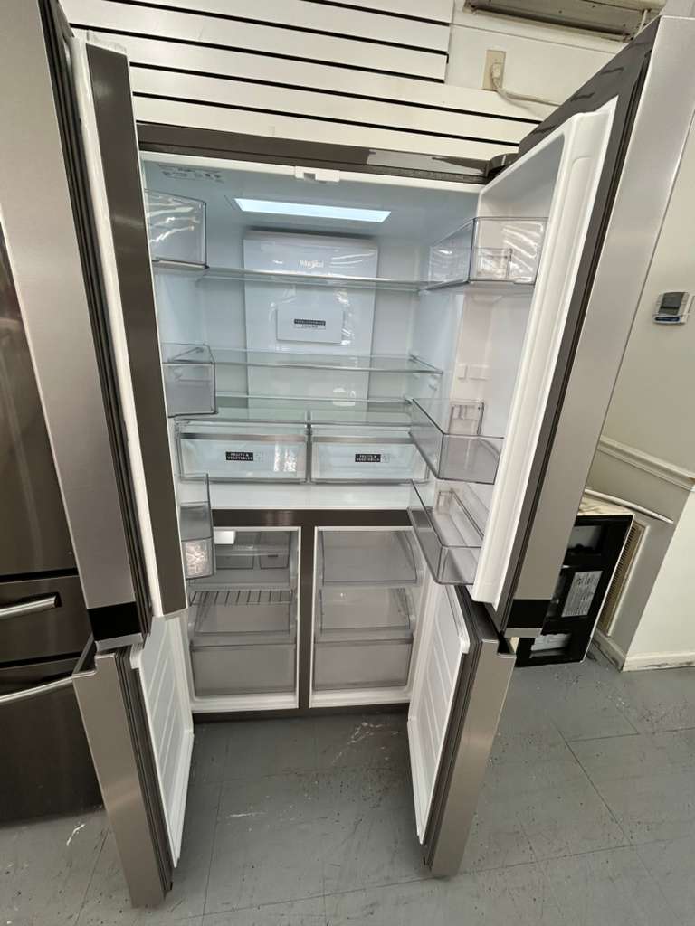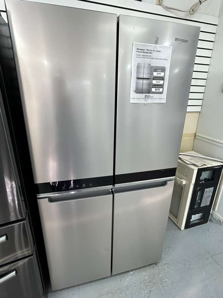 The Whirlpool WRQA59CNKZ 36″ 4-Door French Door Refrigerator is a sleek, counter-depth appliance designed to blend seamlessly into modern kitchens. With a spacious 19.4 cu. ft. capacity, it offers ample room for fresh and frozen foods, making it ideal for families and entertainers alike. The 4-door layout enhances organization, separating fresh ingredients, frozen items, and frequently accessed snacks for easy visibility and access.